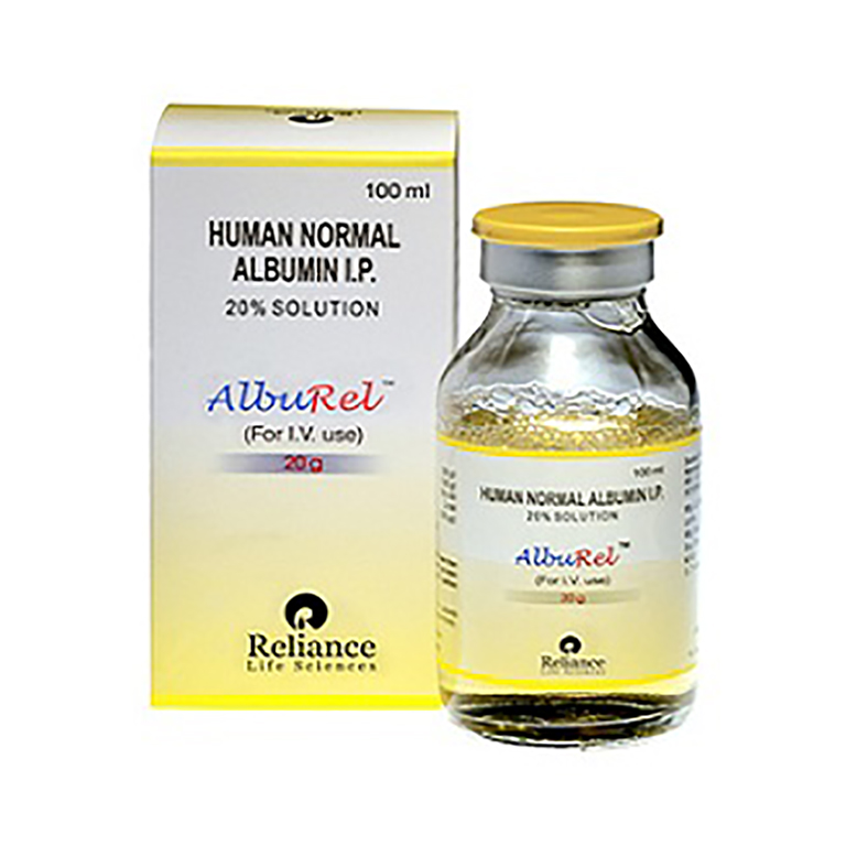 محلول‌های حاوی آلبومین در درمان فوری کمی حجم خون همراه یا بدون شوک، کمی پروتئین خون، در بیمارانی که دچار سوختگی‌های شدید شده‌اند، به منظور حفظ حجم پلاسما و غلظت پروتئین و جلوگیری از غلیظ شدن خون، به عنوان داروی کمکی برای رقیق نمودن خون در اعمال جراحی بای رقیق پس قلبی- عروقی و همچنین برای کنترل خیز در نفروز حاد یا سندرم حاد نفروتیک در بیمارانی که به درمان پاسخ نمی‌دهند، به عنوان داروی کمکی در درمان سندرم زجر تنفسی در بزرگسالان و نیز در درمان کمکی پانکراتیک یا عفونت‌های داخل حفره شکم مصرف می‌شود. محلول غلیظ آلبومین به صورت کمکی در درمان بیماران تحت همودیالیز و نارسایی حاد کبدی و زیادی بیلی‌روبین خون نوزادان مصرف می‌شود.